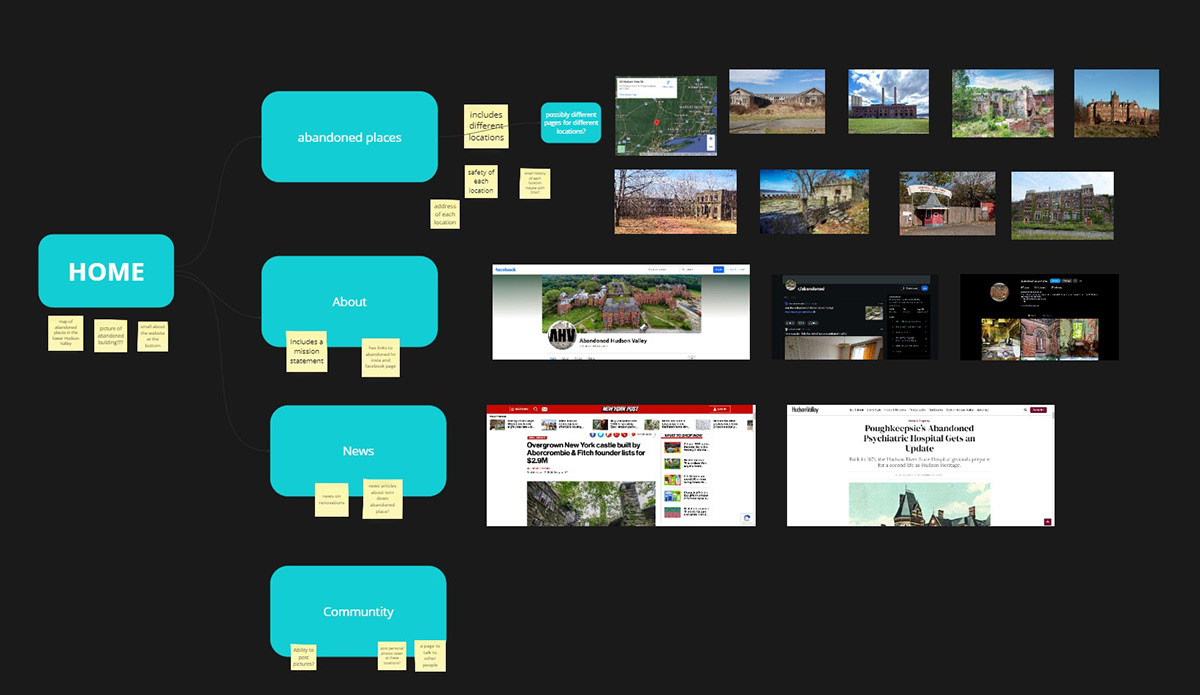 I added and changed a few things about my original site map design. I originally thought that I wouldn't be able to create a community forum, so I instead created an About page that links to existing forums through Facebook Instagram, and Reddit. I was however able to find an outside source that allowed me to include a small forum through a website called Disqus. I also didn't include much abut the history of each location but would like to add links to websites that cover this in the future.